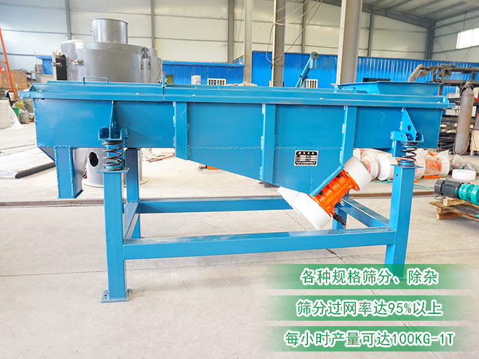 大漢機(jī)械生產(chǎn)的直線振動(dòng)篩分機(jī)利用振動(dòng)電機(jī)作為激振源,使莫來(lái)砂在篩網(wǎng)上被拋起,同時(shí)向前做直線運(yùn)動(dòng),莫來(lái)砂在給料機(jī)上均勻地進(jìn)入篩分機(jī)的進(jìn)料口,通過(guò)多層的篩網(wǎng)產(chǎn)生數(shù)種規(guī)格的莫來(lái)砂,分別從各自的出口排出。以達(dá)到篩分目的。